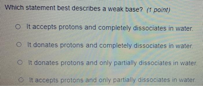 Which Statement Best Describes a Weak Base By Ra_Kira659 18 Apr, 2022 Post a Comment 14 3 Relative Strengths Of Acids And Bases Chemistry Pin On Verry True Pin On House S Adjectives Solved Which Statement Best Describes A Weak Base 1 Point Chegg Com Share No comments for "Which Statement Best Describes a Weak Base"